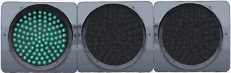他の交通に注意しながら進むことができます。押しボタン式の信号機でよく見かけるタイプです。